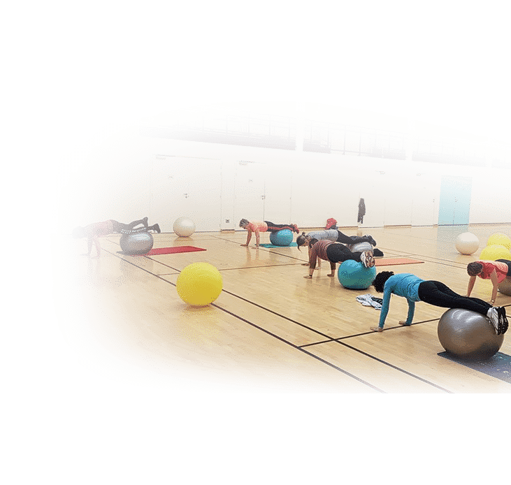 Nous nous déplaçons avec notre matériel : Step, barres lestées, haltères, élastibands, ballon, corde à sauter, swissball, etc….